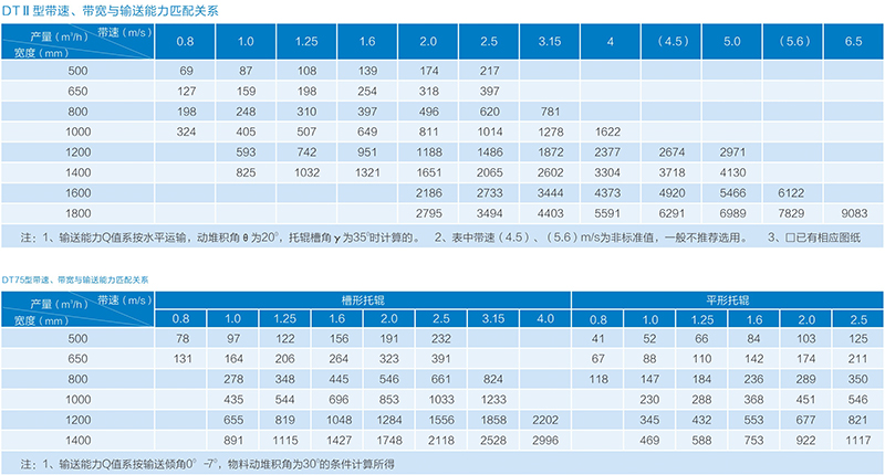 概述 TDⅡ型、TD75型固定带式输送机是通用型系列产品,可广泛用于冶金、矿山、煤炭、港口、电站、建材、化工、轻工、石油等各个行业。根据输送工艺的要求,可以单机输送,也可多台或与其它输送机组成水平或倾斜的输送系统。可输送松散密度为0.5-2.5t/m3的各种散装物料及成件物品。 适用的工作环境温度一般为-25~+40℃。对于在特殊环境中工作的带式输送机,如要具有耐热、耐寒、防水、防腐、防爆等条件,可另行采取相应的防备措施。输送机允许输送的物料块度取决于带宽、带速、槽角和倾角。当输送硬岩时,带宽超过1200mm后,一般应限制在350mm以内,而不能随带宽的增长而加大。 产品特点 ·结构简单。主要由传动滚筒、改向滚筒、托辊或无托辊部件、驱动装置、制动装置、输送带等几大部件组成。其组成部件少,通用性强,便于标准化生产,可按需要组合装配。 ·输送物料范围广泛。带式输送机的输送带可根据输送物件的特性,制造成具有抗磨、阻燃、耐腐蚀、耐高低温等各种性能要求的输送带,因而能输送各种散料、块料、化学品等。 ·输送量大。运量可从每小时几千克到几千吨,而且是连续不间断运送,这是其他运输设备无法比拟的。 ·运距长。单机长度可达十几千米一条,中间无需任何转载点。当使用中间摩擦驱动方式,可使输送长度大幅度增加。 ·装卸料十分方便。根据生产工艺需要,在任何点上进行装、卸料,还可在回程段上装、卸料,进行反向运输。